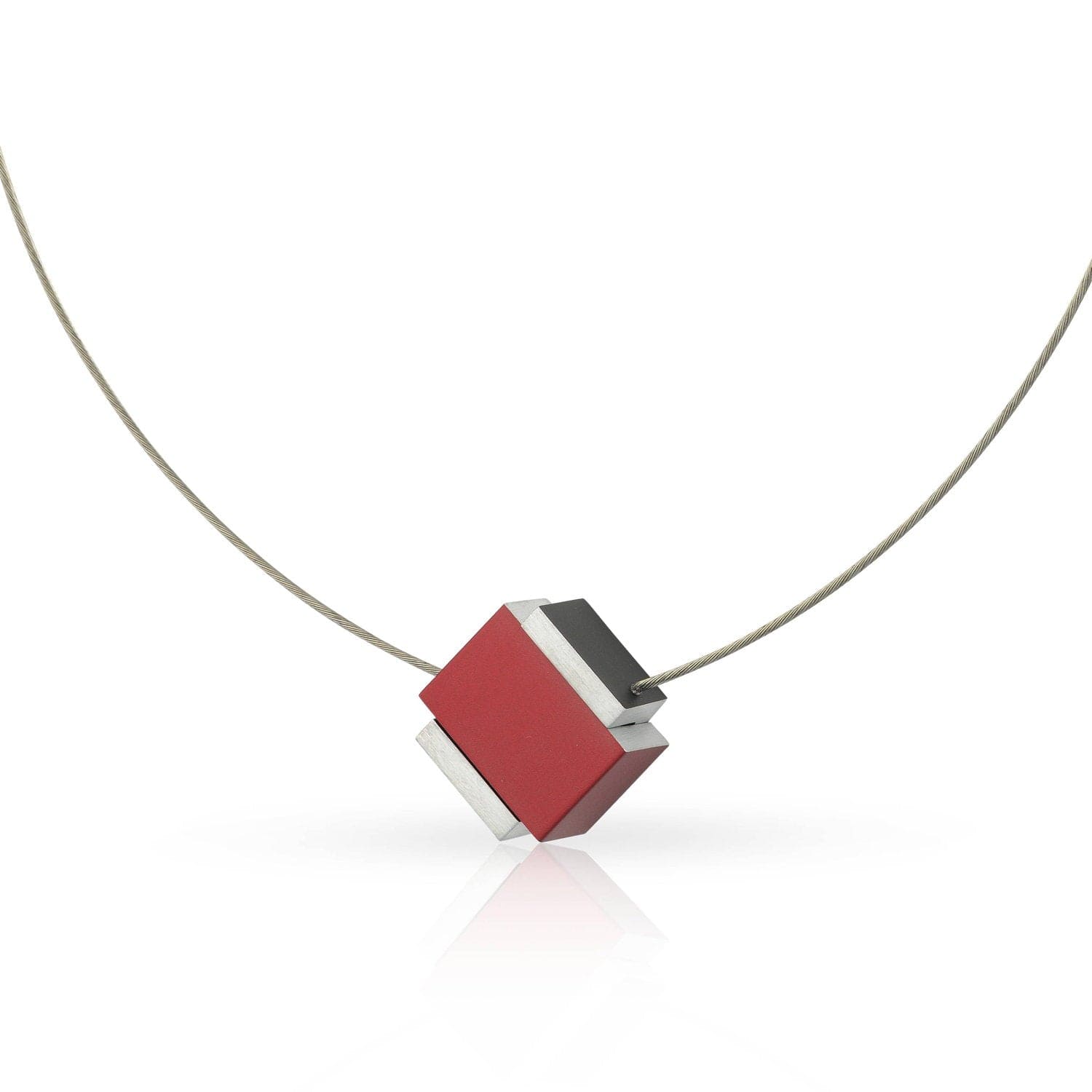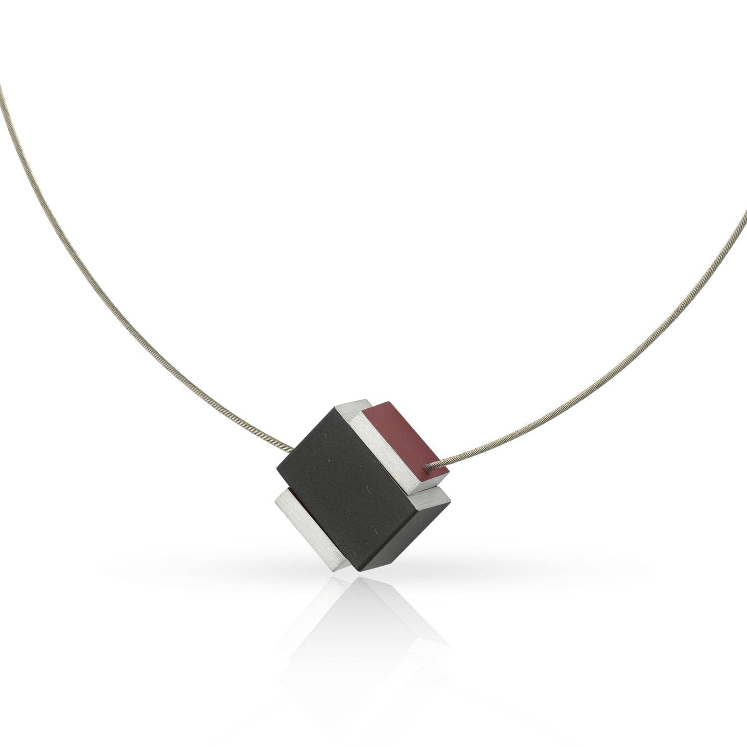 Eine Halskette, die zu jedem Outfit passt und dezent hervorsticht. Die Halskette fällt in V-Form. Halskette aus einem offenen Quadrat mit einem darin platzierten geschlossenen Quadrat mit Magnetverschluss. Die Magnete ziehen sich gegenseitig an und diese Halskette schließt mit einem „Klick“. Diese Halskette wird geöffnet, indem der Würfel vom Quadrat entfernt wird. Die Halskette besteht aus einem sanft fallenden Kettendraht aus Edelstahl, matt und hochglänzend. Sie können diese Halskette endlos mit anderen matten und glänzenden silberfarbenen Artikeln aus unserer Kollektion kombinieren. Zeitlos und schlicht im Design.